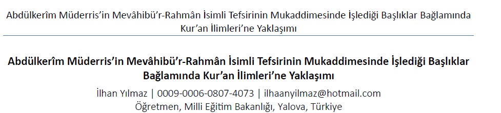 Abdülkerîm Müderris’in Mevâhibü’r-Rahmân İsimli Tefsirinin Mukaddimesinde İşlediği Başlıklar Bağlamında Kur’an İlimleri’ne Yaklaşımı