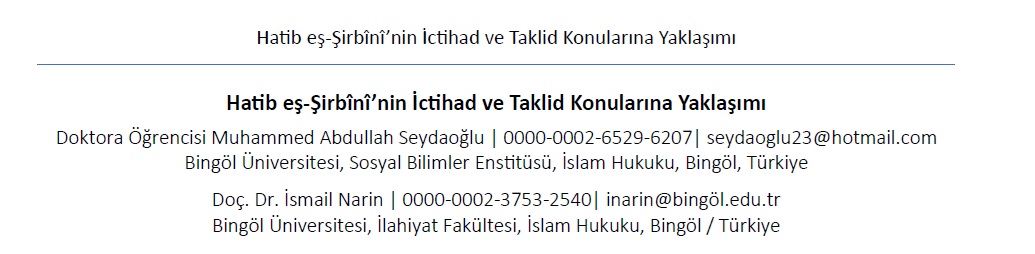 Hatib eş-Şirbînî’nin İctihad ve Taklid Konularına Yaklaşımı